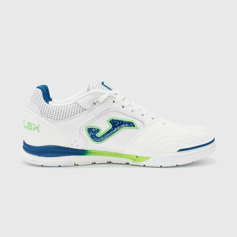 Joma Top Flex Rebound – самая узнаваемая среди профессионалов модель футзалок, выполненная из кожи премиум-класса, обеспечивающей максимальную гибкость и отличный контроль мяча. Верх изготовлен из эластичной кожи премиум-класса, перфорированной в наиболее важных зонах для доступа воздуха по технологии VTS. Внутри использован качественный и прочный текстиль, обеспечивающий комфорт для стопы. Носок прошит и усилен для защиты и возможности бить по мячу ак модно сильнее и наносить максимально точные удары. Имеется съемная стелька из предварительно отформованного материала EVA. Межподошва изготовлена из двух слоев филона разной плотности по технологии FULL DUAL PULSOR. Верхний слой - – из более плотного, для устойчивости. А нижний слой – из материала, произведенного с применением технологии REACTIVE BALL, который обеспечивает хорошую амортизацию. Подошва изготовлена из износостойкой резины DURABILITY (DIN-70), которая обеспечивает отличный контакт с игровой поверхностью, а за счет линий FLEXO движение стопы во время бега становятся максимально естественными.
